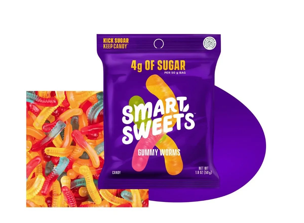 SmartSweets – Ditch the artificial dyes and grab their low-sugar gummy worms or peach rings (just 3g sugar per bag!).